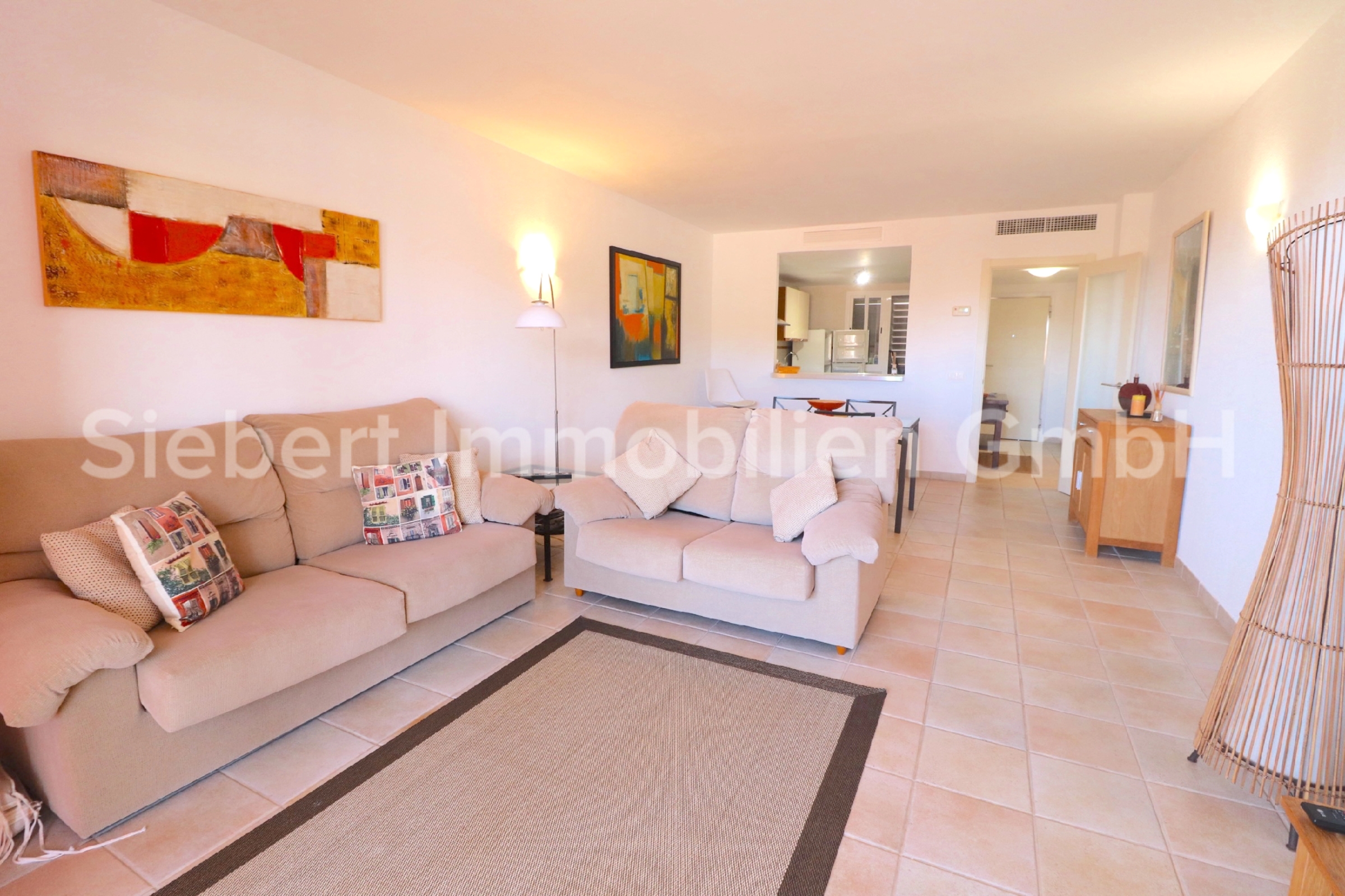 Objektbeschreibung: Von der Wohnung aus geht Ihr Blick rechts zum Meer und links in die mediterrane Gartenlandschaft der Gemeinschaft mit Pool. Die Gemeinschaftsanlage ist sehr gepflegt und großzügig. Die verschiedene Mehrfamilienhäuser, die im mediterranem Stil schön in in die Landschaft eingebettet wurden, ziehen sich um die Pool- und Gartenanlage was einen privaten Charakter verleiht.